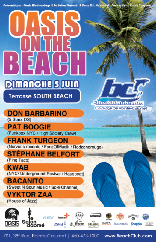 Djs: Don Barbarino (5 Starz Dope Soundz) x Pat Boogie (Funkbox NYC / High Society Crew) x Frank Turgeon (Nervous Records / FanzOfMusik / Redzonerouge) x Stephane Belfort (Pinq Taco) x Kwab (NYC / Underground Revival / Hausbeat) x Bacanito (Sweet N Sour Music / Sole Channel) x Vyktor Zaa (House of Jazz)