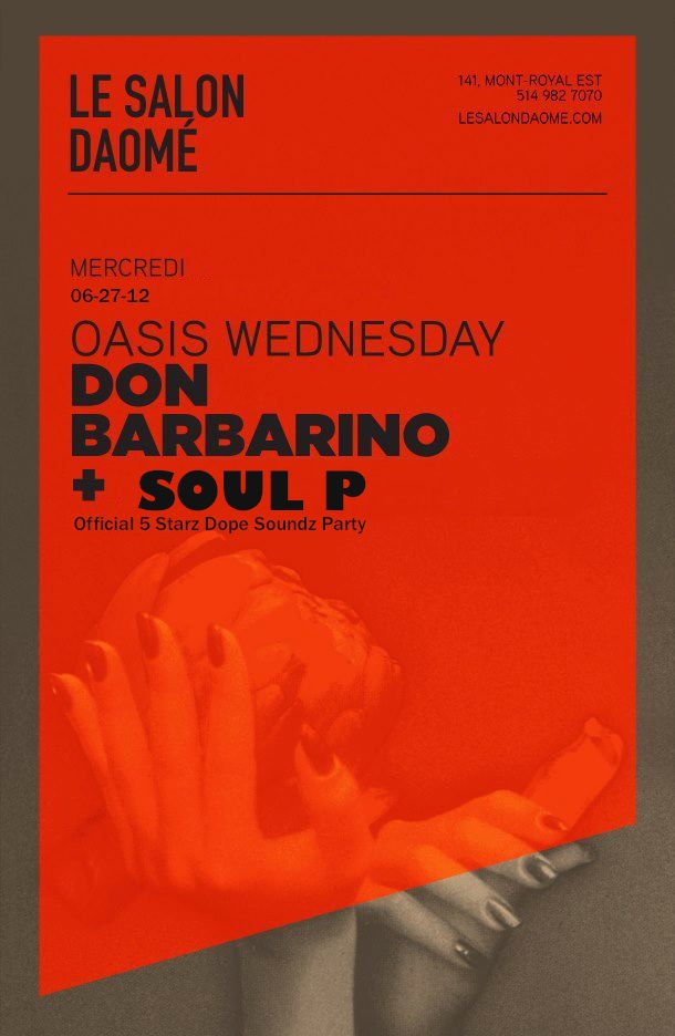 The Oasis Crew is very pleased to be hosting The Official 5 Starz Dope Soundz Party ft Soul P (MIA) and Don Barbarino (MTL) on the ones and twos.