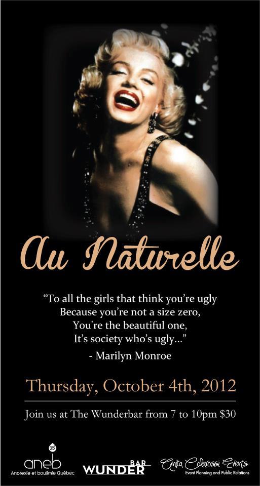 “AU NATURELLE…” is a themed event benefiting ANEB Quebec (Anorexia and Bulimia) inspired by one the world’s famous fashion icon and to commemorate 50 years of her death, Marilyn Monroe ♥
