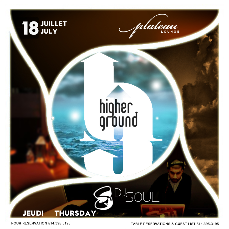Experience HiGHER GROUND @ Plateau Lounge (W Hotel) with our own Dj Soul on the 1s & 2s blending the best selection of sexy R&B tunes while you discover our signature cocktails prepared by Plateau Lounge mixologists 😉