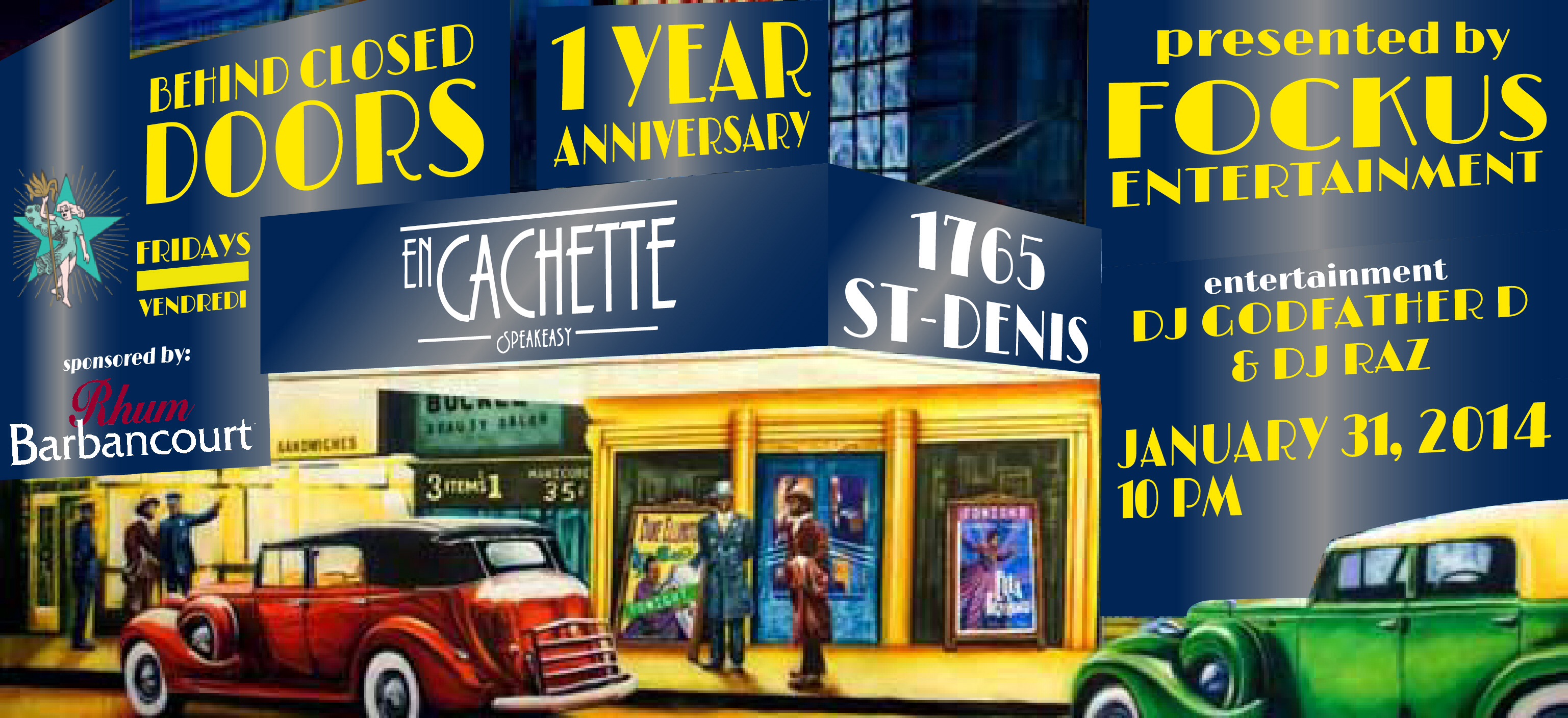 This Friday you are all invited to celebrate Behind Closed Doors 1st anniversary. This event is presented by Barbancourt and will feature our 2 resident Djs, Dj Raz & Godfather D, tagging along on the turntables all night long. As we do every week, we will take it back… back in to time… to the Golden Era of Hip Hop and we will add a twist of New School Hip Hop and Reggae 😉