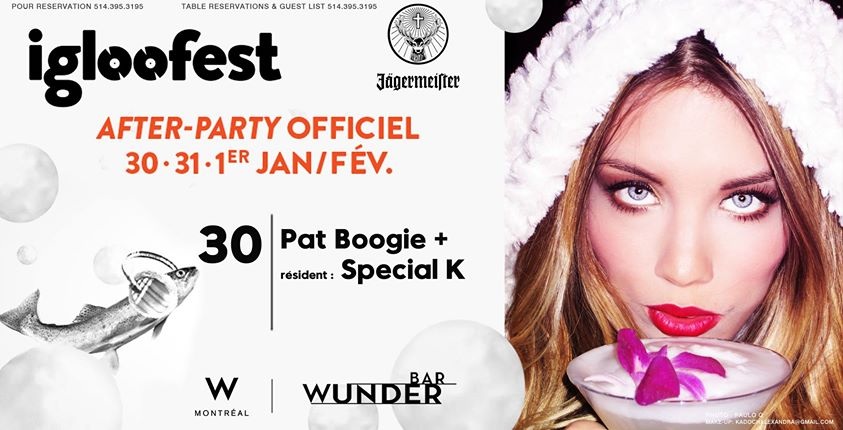 This Thursday we are meeting @ the Wunderbar (W Hotel) for the official Igloofest After-Party that will feature two amazing Montreal Djs, Pat Boogie and our resident, Dj Special K. Experience some of Montreal’s best cocktails while you dance to the sound of Pat Boogie & Dj Special K… keeping the Igloofest vibe going until 3am!!!