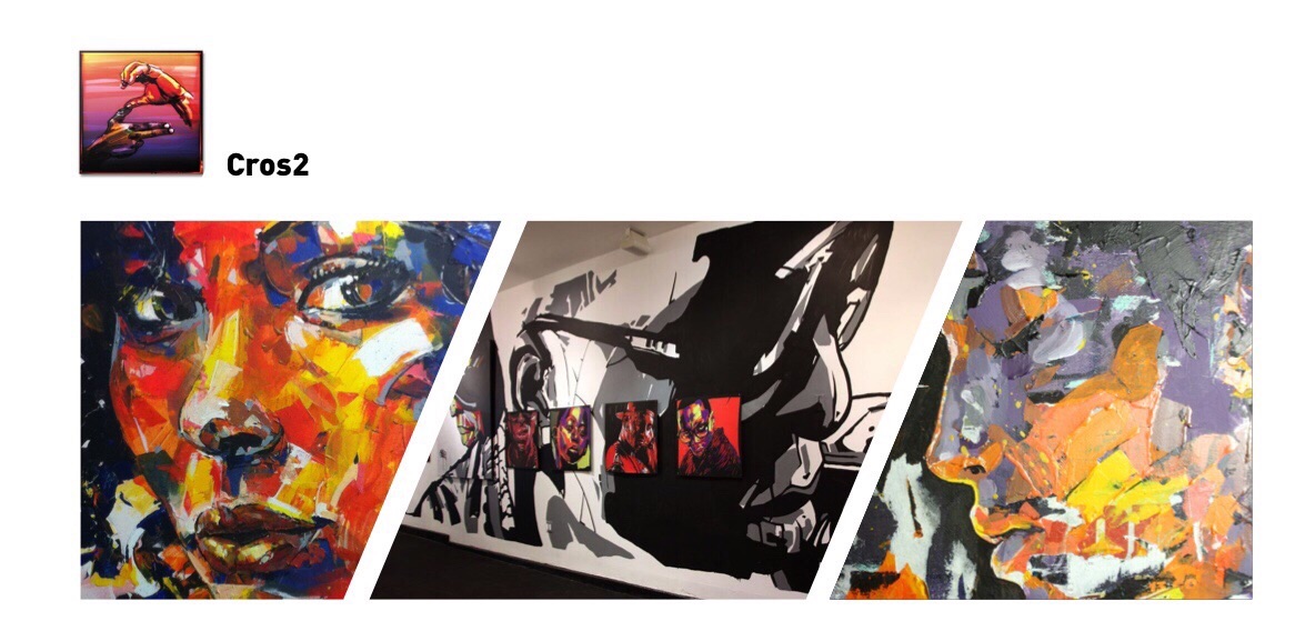 “L’artiste marseillais, Cros2 revient investir l’espace avec de nouvelles peintures et sérigraphies puissantes et révélatrices. Cros2 développe depuis plusieurs années une esthétique illustrative revisitant un point de vue très personnel sur l’art de la rue. Cohabitent chez lui une forte culture artistique largement influencé par le graffiti et le Hip Hop en général, et une approche plus traditionnelle du dessin réaliste. Cros2 restitue sentiments et émotions dans des œuvres au réalisme troublant. Visages et scènes prennent vie sous la main de cet artiste singulier qui anime les expressions de ses personnages dans un seul et même movement créateur.