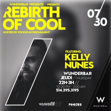 Rebirth of Cool Thursday August 13th 2015 Wunderbar (W Hotel) – 901 SQ Victoria, Montreal Music by: Kelly Nunes Hosted by: Mike Steven Entrance: Free Hip Hop R&B Reggae Join the Wunderbar Facebook page HERE! Our resident, Kelly Nunes will be providing the soundtrack for the famous Rebirth of Cool night this Thursday @ Wunderbar … More Events: Rebirth of Cool @ Wunderbar (W Hotel) ft Kelly Nunes