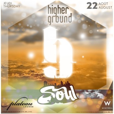 H i G H E R G R O U N D Thursday, November 14th 2013 Plateau Lounge (W Hotel) – 901 Square Victoria, Montreal Music by: Dj Soul Entrance: Free Join Plateau Lounge facebook page here! Once again we will be vibing to the soulful sound of Dj Soul in the luxurious Plateau Lounge … More Events: Higher Ground @ Plateau Lounge (W Hotel) w/ Dj Soul