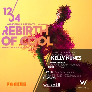 Rebirth of Cool Thursday January 8th 2015 Wunderbar (W Hotel) – 901 Square Victoria, Montreal Music by: Kelly Nunes Hosted by: Fockus Entertainment Entrance: Free Hip Hop R&B Reggae Join the Wunderbar Facebook page HERE! Rebirth of Cool is back and we are mixed, remastered and reborn for 2015 with Kelly Nunes on the 1s … More Events: Rebirth Of Cool @ Wunderbar (W Hotel) ft Kelly Nunes