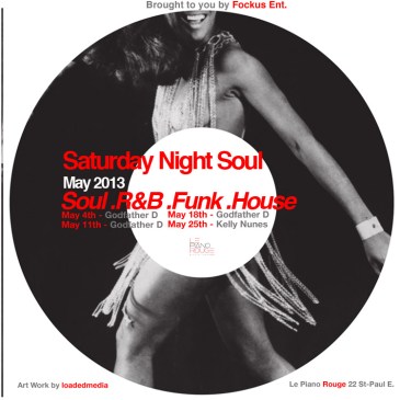 S A T U R D A Y N i G H T S O U L Saturday, May 18th 2013 Le Piano Rouge Lounge – 22 St-Paul E. – Montreal Live performance: Shaharah Dj: Godfather D Entrance: $10 Join Le Piano Rouge Lounge Facebook Page HERE! Special Birthday Edition of SATURDAY NiGHT SOUL with … More Events: Saturday Night Soul @ Le Piano Rouge Lounge ft Godfather D
